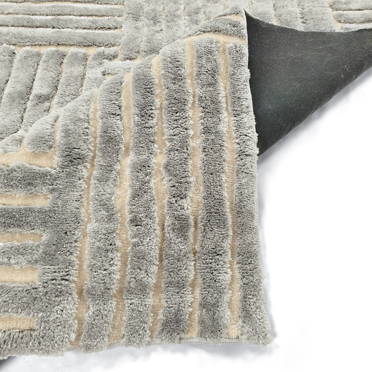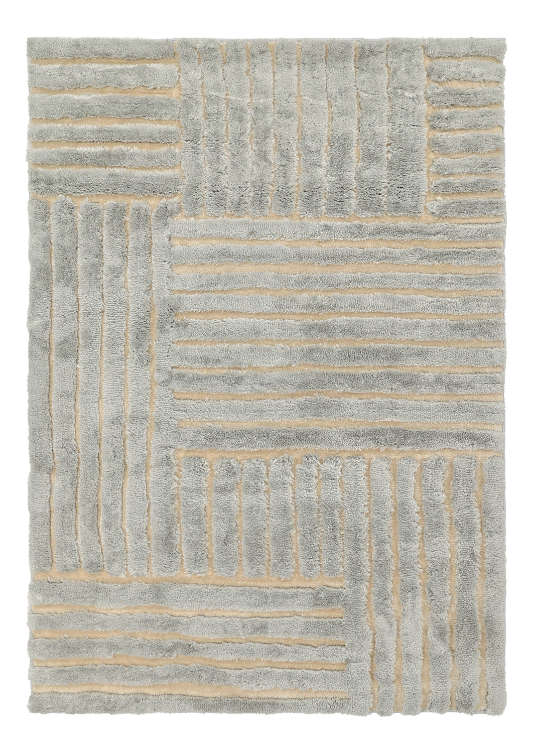 Elegant ryeteppe med high and low-struktur som skaper en moderne og livlig følelse i rommet. Teppet har en variert luv med partier i forskjellige høyder, noe som gir en taktil overflate og et vakkert dybdespill i lyset. Den tykke luv gjør teppet mykt og behagelig å gå på, mens de lavere partiene fremhever mønsteret og gir et eksklusivt preg.
