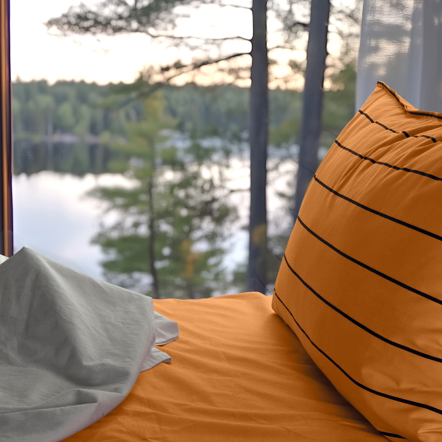 Opplev komforten av vårt putetrekk i 100 % BCI-sertifisert bomull, som gir en myk og behagelig følelse mot huden. Laget av høykvalitets, pustende og slitesterkt materiale, tilfører det søvnen din en touch av luksus. Better Cotton Initiative-sertifiseringen sikrer at bomullen er dyrket på en ansvarlig måte, med omsorg for både miljøet og de menneskene som produserer den. Putetrekket har mørkeblå striper og finnes i flere farger for enkelt å matche ulike interiørstiler og skape en harmonisk atmosfære på soverommet ditt.